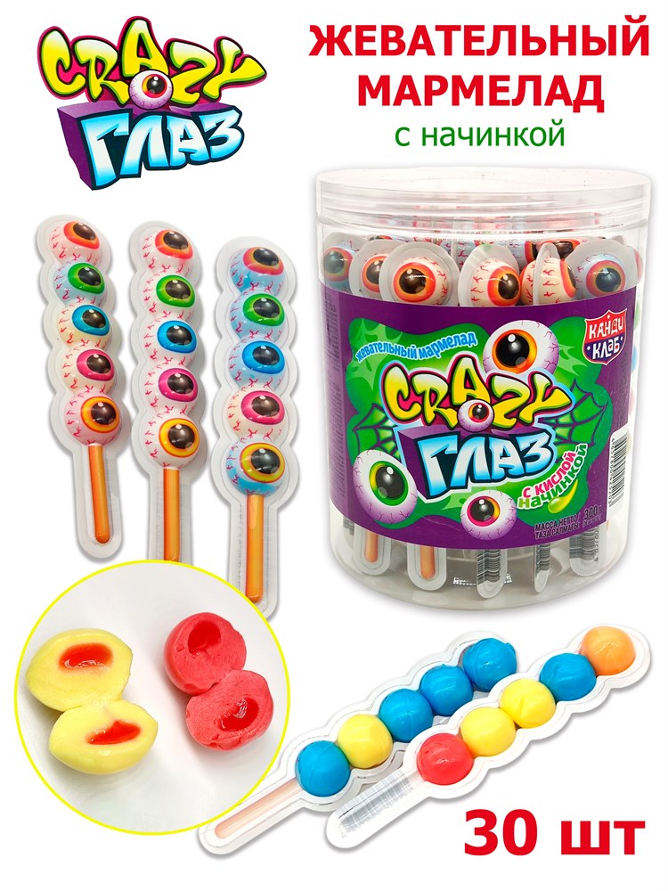Мармелад CRAZY ГЛАЗ 5 шт в блистере с кислой начинкой (Канди Клаб) (MAR150) 10 гр*12 банок*30 шт