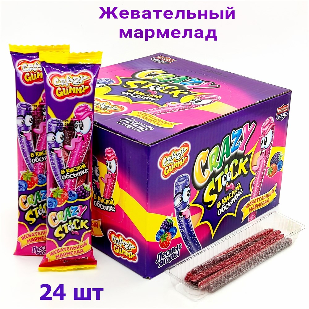 Мармелад CRAZY GUMMY CRAZY STICK трубочки в кислой обсыпке Лесные ягоды (MAR136) 20 гр