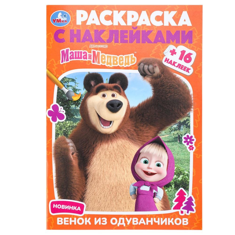 Маша и Медведь. Венок из одуванчиков. Раскраска + 16 наклеек. 145х210 мм. 16 стр. Умка
