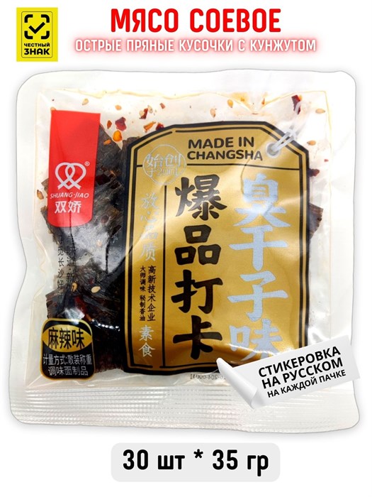 Мясо соевое Острые пряные кусочки с кунжутом Shuang Jiao (04093) 35 гр