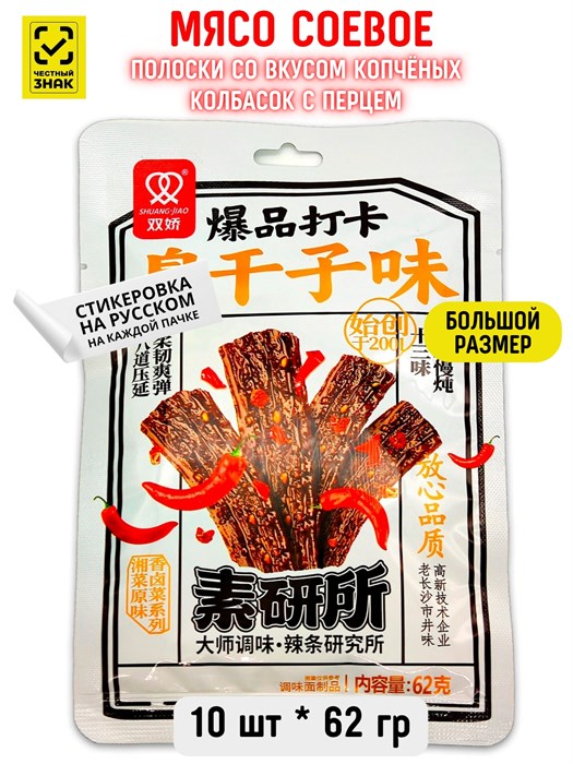 Мясо соевое Полоски со вкусом Копченых колбасок с перцем (10506) 62 гр