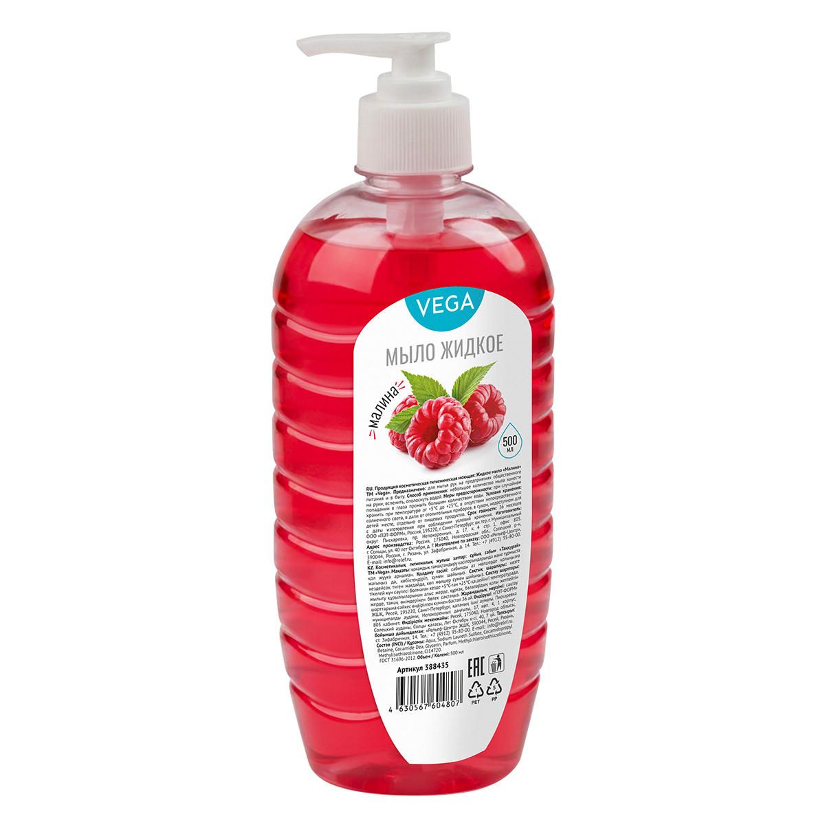 Мыло жидкое Vega "Малина", дозатор, 500мл