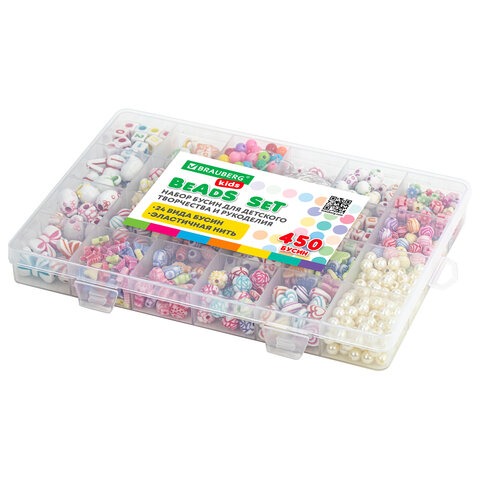 Позвольте ребенку проявить фантазию и развить творческие способности вместе с набором бусин для создания украшений и детского творчества BRAUBERG KIDS!