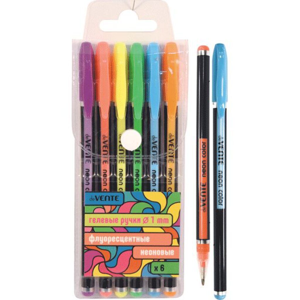 Набор гелевых ручек deVENTE 6цв. "Neon Black" 1мм, черный корпус, чернила НЕОН deVENTE