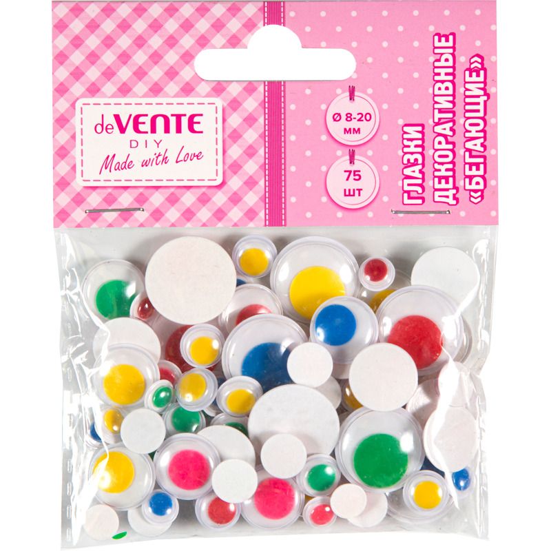 Глазки декоративные "deVENTE. DIY" 75 шт (8 мм - 20 шт, 10 мм - 25 шт, 15 мм - 20 шт, 20 мм - 10 шт) круглые пластиковые, самоклеящиеся, с подвижной вставкой,