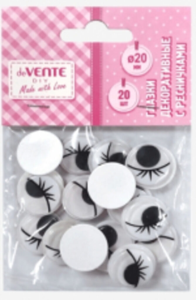 Набор "Глазки с ресницами" 20мм, 20 шт, самоклеящиеся deVENTE