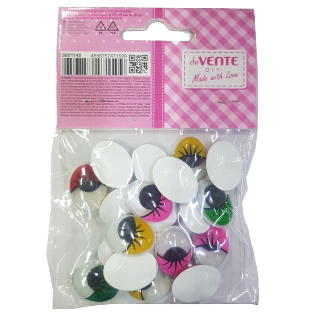 Набор "Глазки с ресницами" овальные 20*15мм, 20 шт, самоклеящиеся, ассорти deVENTE