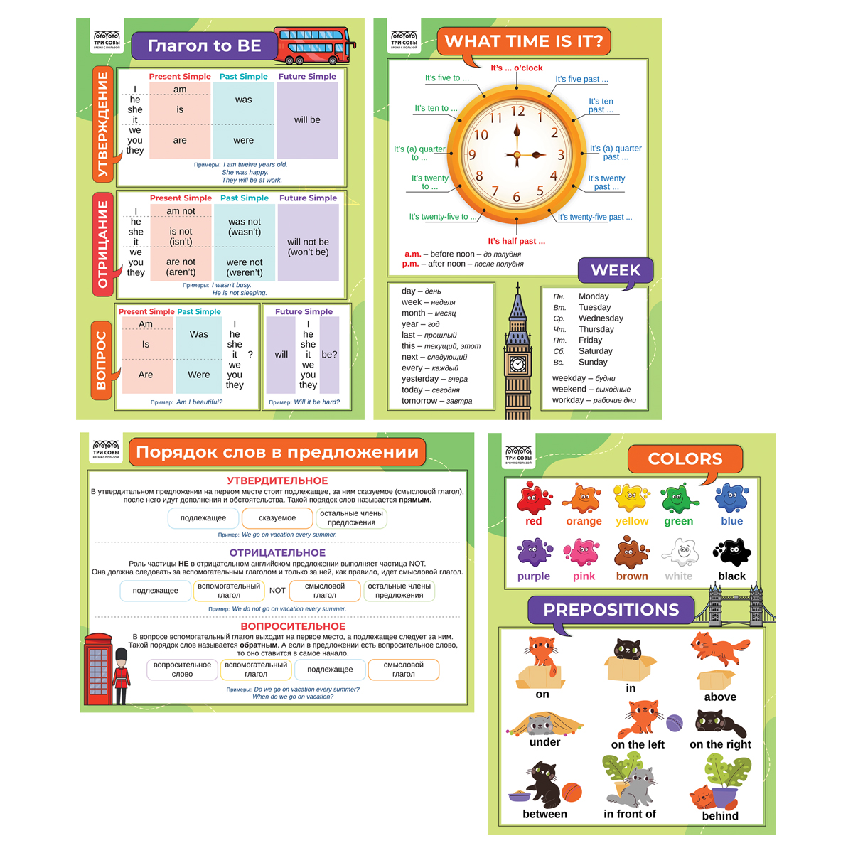 Набор обучающих плакатов ТРИ СОВЫ "1-4 класс. Английский язык", А4, 4 плаката