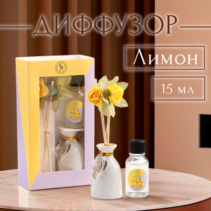 Набор подарочный с диффузором «Ваза с цветком» лимон, «Богатство Аромата»