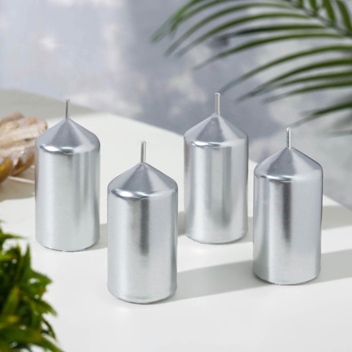 Набор свечей «Столбик», 4 шт., серебряный, 7×3.8 см