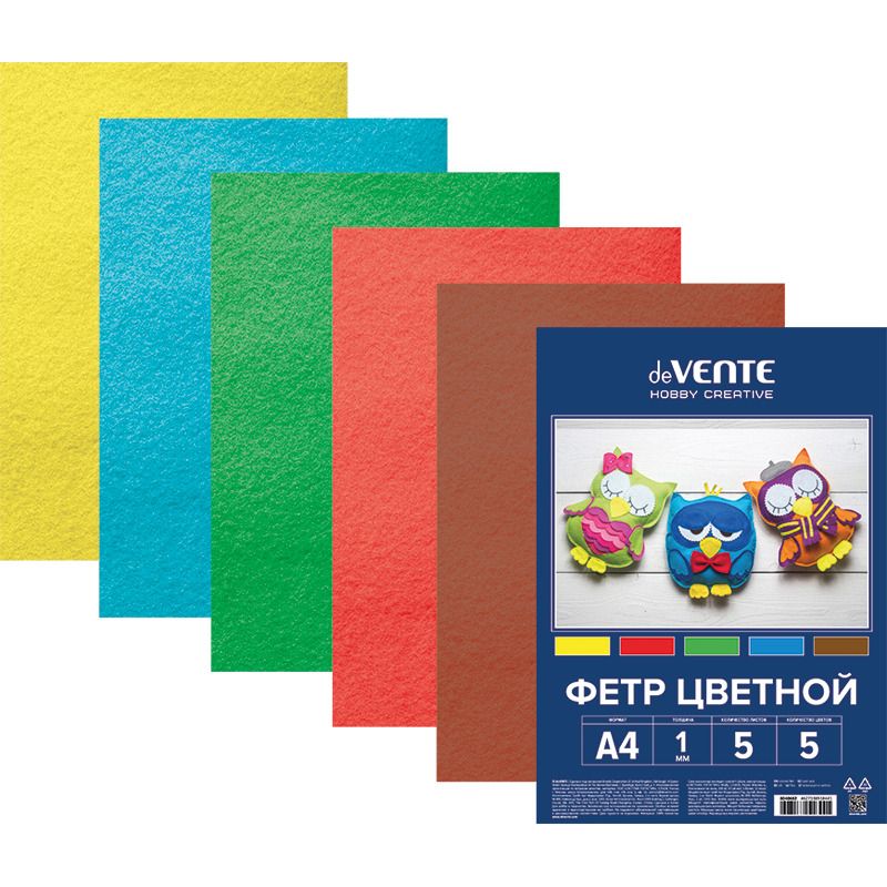 Набор цветного фетра А4 5л. 5цв. "Яркие цвета", 1мм