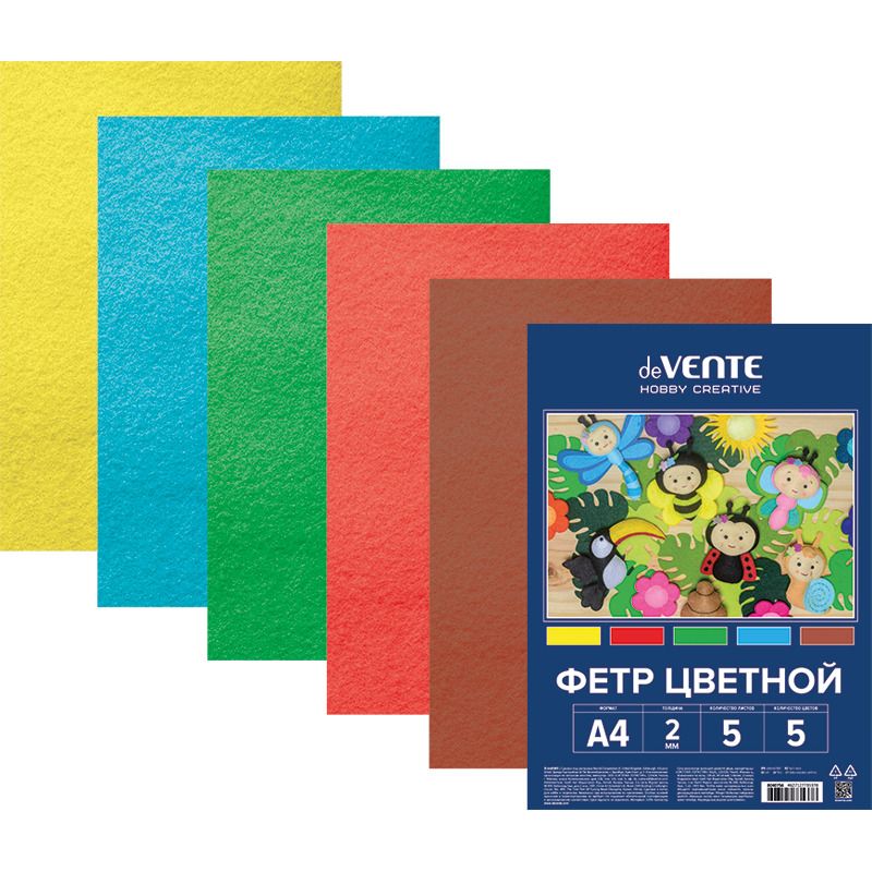Набор цветного фетра А4 5л. 5цв. "Яркие цвета", 2мм