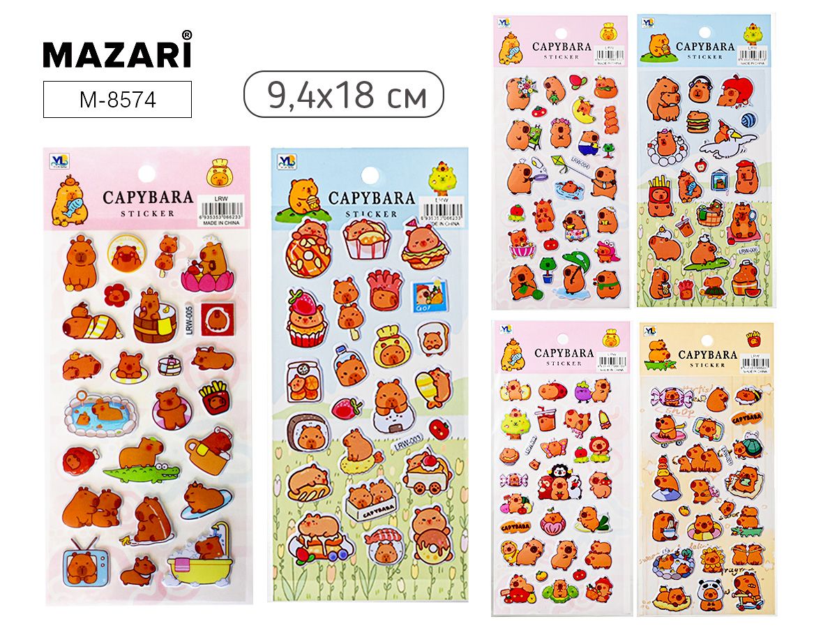 Наклейки декоративные 9,4*18см "Капибара" 6 диз.