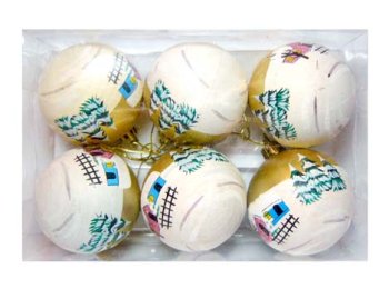 Новогодняя игрушка на елку Шар 6шт. AW-207 с цв.рис. 5,5см в пласт.уп.