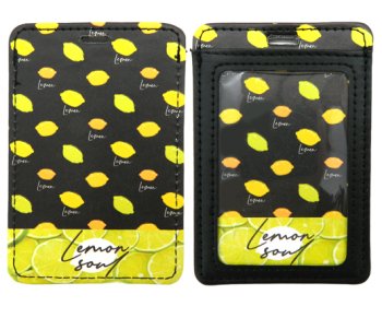 Обложка для проездного билета DC-804 черная "Лимон" 2 кармана, А7, гладкая экокожа