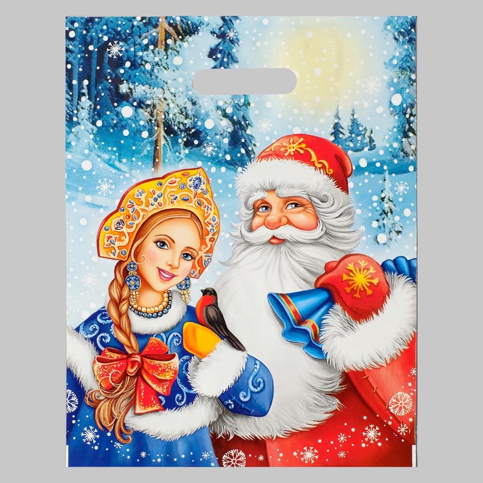 Пакет "Дед Мороз и Снегурочка", полиэтиленовый с вырубной ручкой, 31х40 см, 60 мкм 5193299