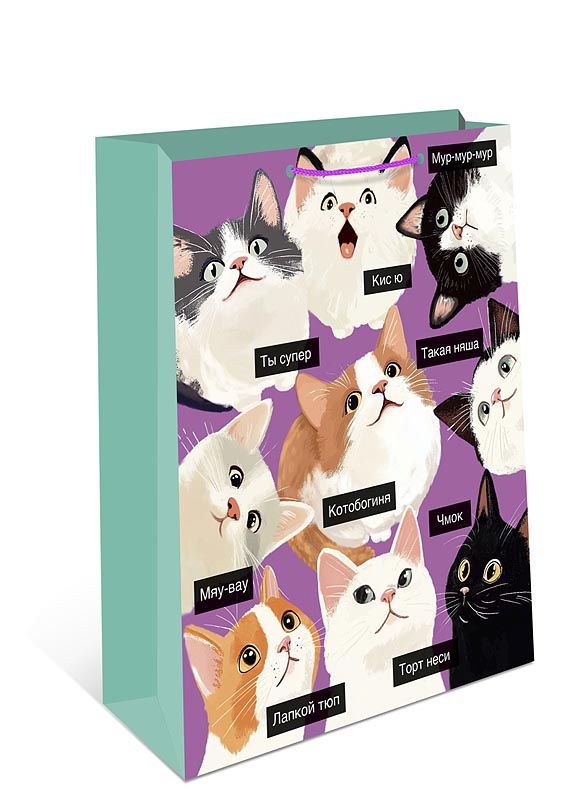 Пакет подар. бумажн. 26*32*12 см, 130гр/м2 Коты (мем) 255785