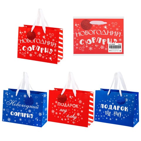 Пакет подарочный (1 шт.) новогодний, 27х11х20 см, "Новогодний подарок", ламинация, ассорти