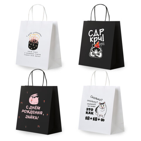 Пакет подарочный (1 штука) 26х13х32 см (L) "Funny Mix", ассорти, крафт