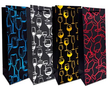 Пакет подарочный 12*35см DN-245 "Бокалы" бумажный с ручками