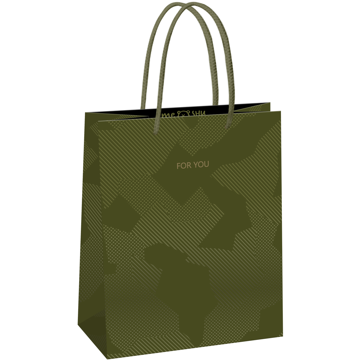 Пакет подарочный 18*23*10см MESHU "Green pattern", выборочный лак, матовая ламинация