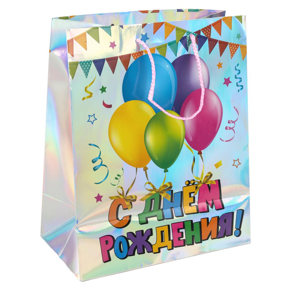 Пакет подарочный голография l,с днем рождения,140 гр/м2 ЧУДО ПРАЗДНИК в кор.10*12шт