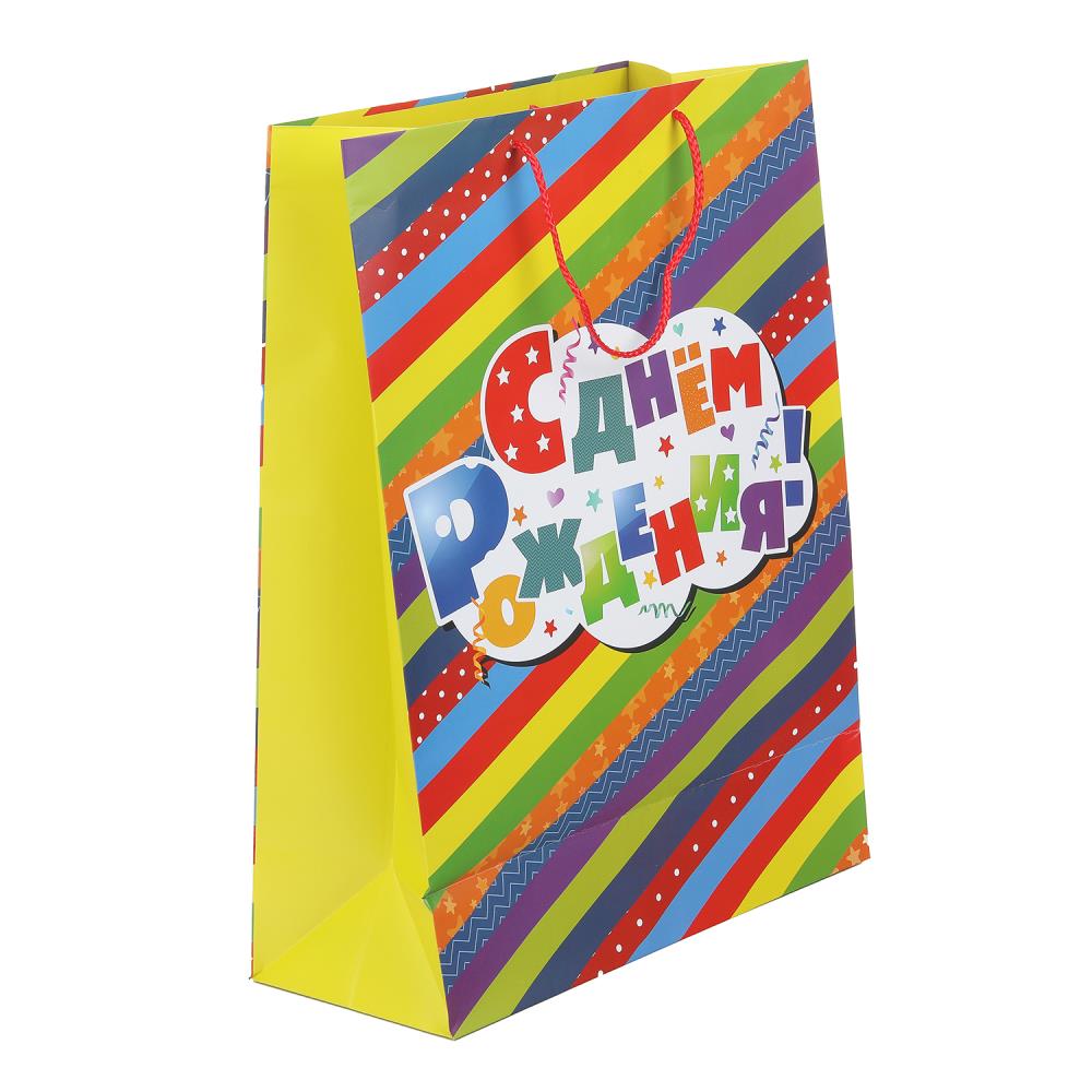 Пакет подарочный МАТОВЫЙ l,день рождения, полосы,140 гр/м2 ЧУДО ПРАЗДНИК в кор.10*12шт