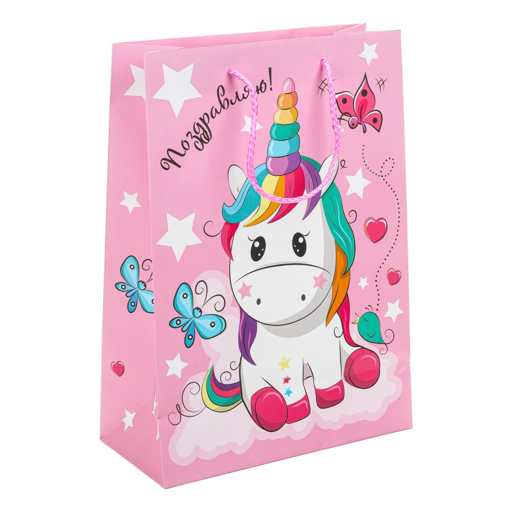 Пакет подарочный МАТОВЫЙ l,единорог,140 гр/м2 ЧУДО ПРАЗДНИК в кор.10*12шт
