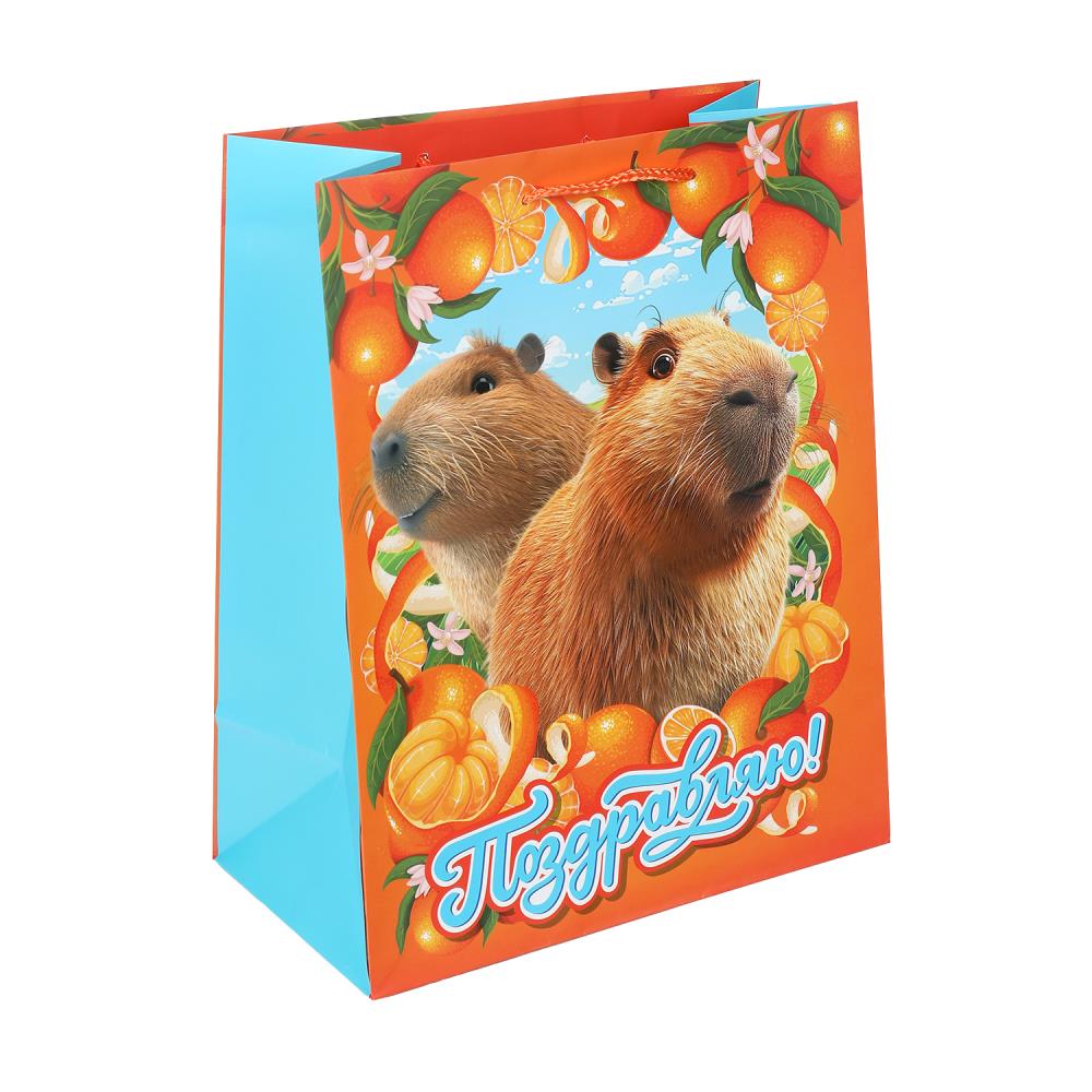 Пакет подарочный МАТОВЫЙ l,капибара,140 гр/м2 ЧУДО ПРАЗДНИК в кор.10*12шт