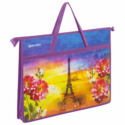 Папка BRAUBERG "Paris" предназначена для хранения чертежей, рисунков и других художественных изображений. Практичная папка на молнии с ручками защитит чертежи, рисунки и другие художественные изображения формата А3 от смятия и повреждений. Изготовлена из износостойкого пластика, боковины выполнены из прочного полиэстера. Яркая и чёткая печать дизайна нанесена с двух сторон. Размер папки – 340х465 мм, ширина – 50 мм. Широкий формат позволяет разместить внутри канцелярские принадлежности для творчества. Папка оснащена удобной застёжкой-молнией сверху.