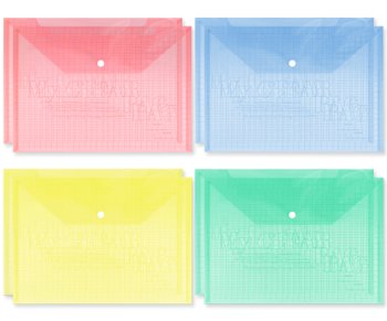 Папка с кнопкой А-4 DH-54 "CLEAR" INTELLIGENT 31.7х23см, прозрачная в клетку, ассорти