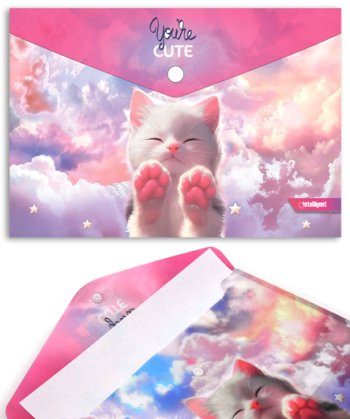 Папка с кнопкой А-4 DL-234/DE-75603 "Котик" INTELLIGENT 32,5х22,5см, пластик, ассорти (4/400)