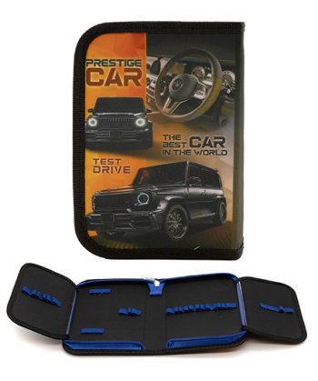 Пенал 1 отд. CJ-12006 "Престижный внедорожник" с 2-мя створками, текстиль 21*14*4см, черно-оранжевый