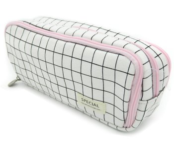 Пенал DK-230/DF-151/DC-276 "В клетку" прямоугольный, текстиль, белый, 3 отделения, на молнии, в паке