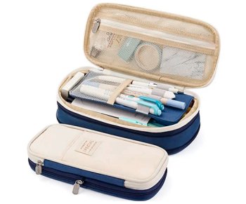 Пенал DK-240 "Special" прямоугольный, текстиль, с планкой для пишущих предметов внутри, бежево-синий