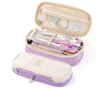 Пенал DK-241 "Special" прямоугольный, текстиль, с планкой для пишущих предметов внутри, бежево-фиоле