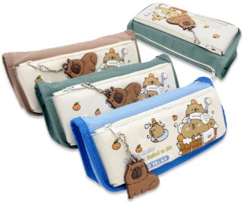 Пенал DL-301 "Капибара" прямоугольный, текстиль, 1 отделение с наружным карманом, брелок, ассорти