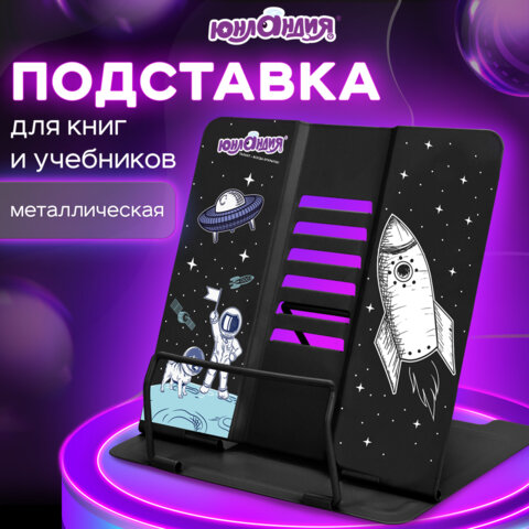 Подставка для книг и учебников ЮНЛАНДИЯ "Space", регулируемый наклон, металлическая, 237577