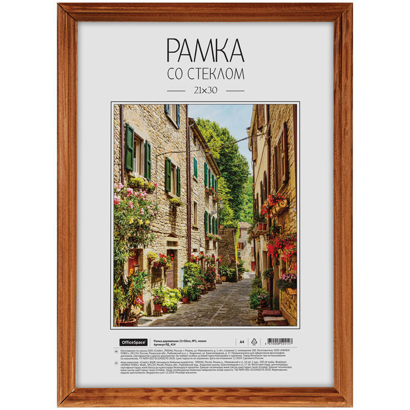 Рамка деревянная 21*30см, OfficeSpace, №1, мокко