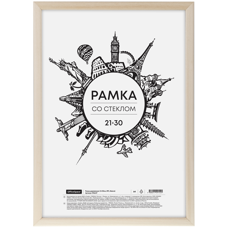 Рамка деревянная 21*30см, OfficeSpace, №5, Natural
