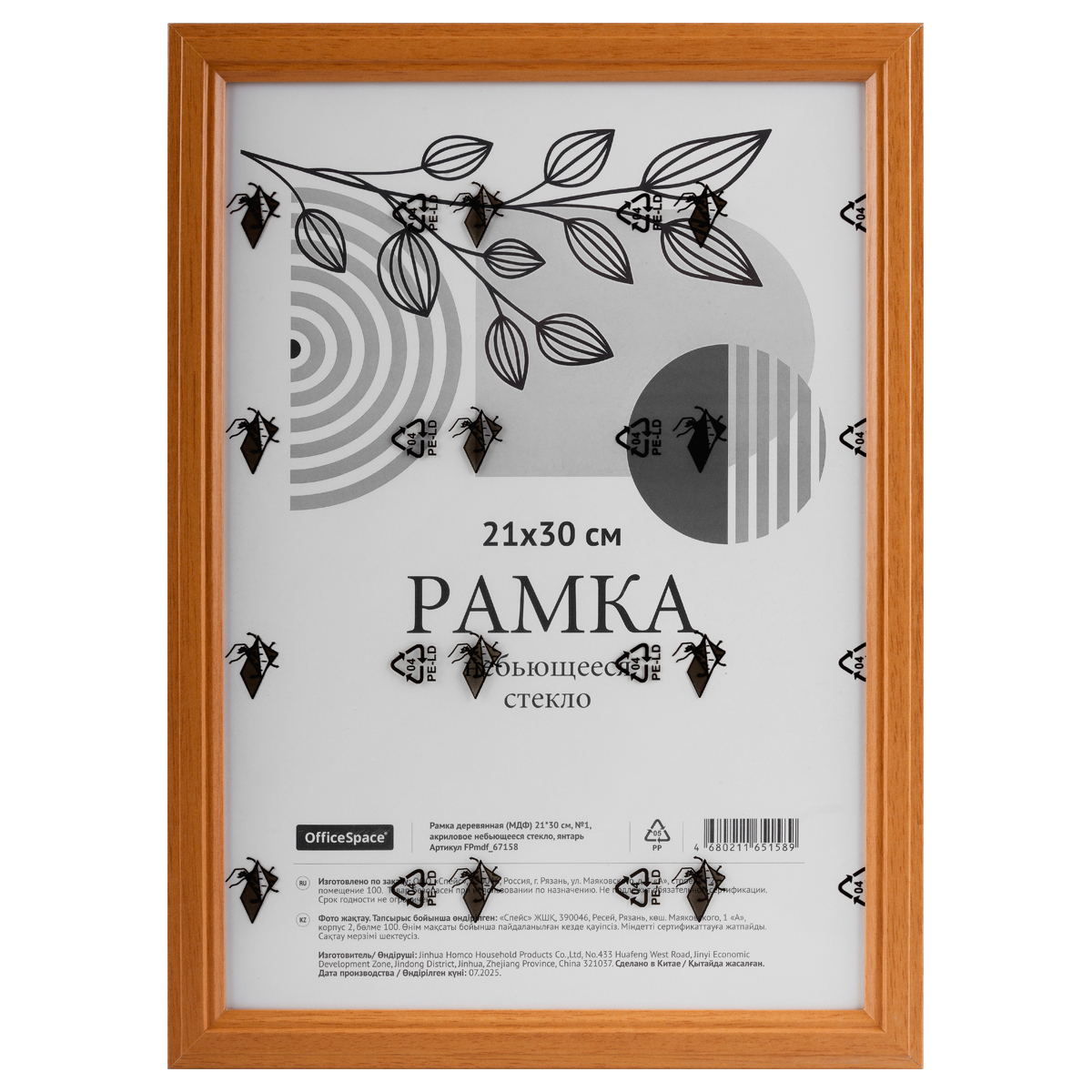 Небьющаяся рамка OfficeSpace из дерева (МДФ) цвета янтарь дерево используется для оформления фотографий, дипломов, сертификатов, постеров, картин, грамот и любых других изображений. Размер — 21*30 см.