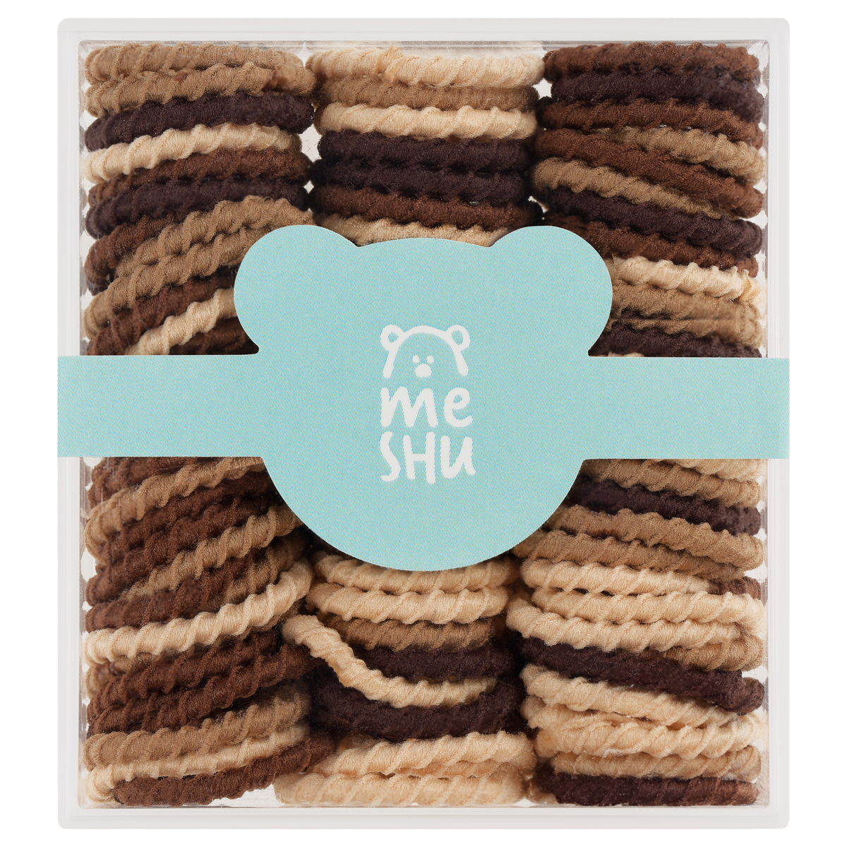 Резинки для волос MESHU, тонкие, коричневые ассорти, 90шт., диаметр 2см, пластиковый бокс