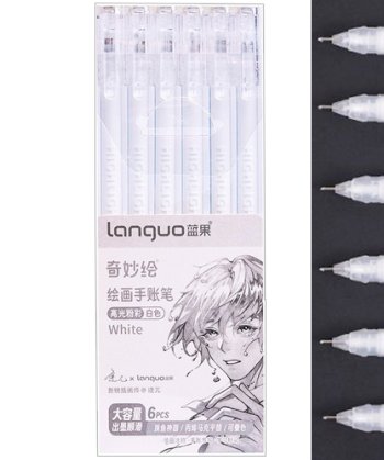 В наборе ручки 6 штук. Белая ручка для скетчинга нужна для проработки готового скетча маркерами или для рисования на черной бумаге скетчбука. Белой ручкой можно сделать красивые рефлексы, блики, они придадут профессиональный вид вашему наброску, может пол