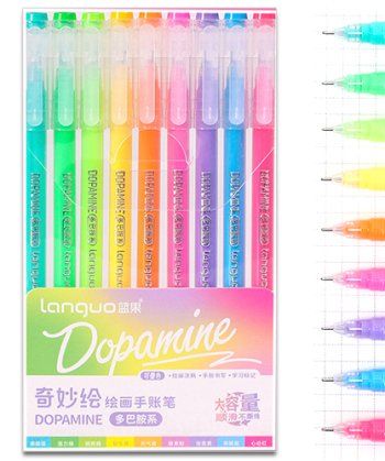 В наборе ручки 9 цветов. Цветные гелевые ручки используются для выделения в тексте заголовков, определений и других элементов, на которые необходимо обратить внимание. С помощью этих ручек создаются декоративные надписи или рисунки.