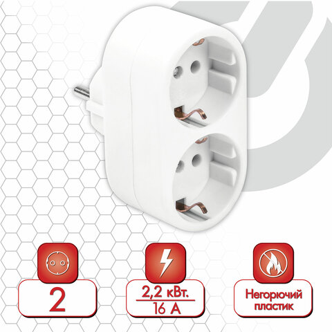 Сетевой разветвитель SONNEN U-020G, 2 розетки, с заземлением, 16 А, белый