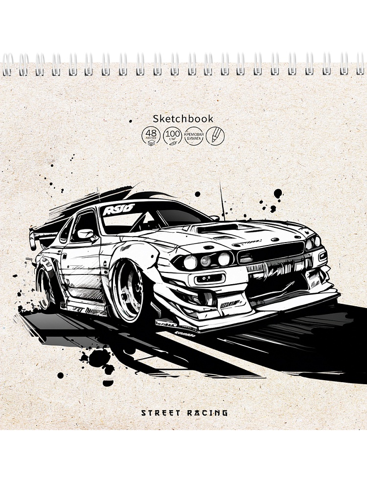 Скетчбук 190*190мм 48л., гребень 100гр/м2 "Автомода - 4" жестк.подложка