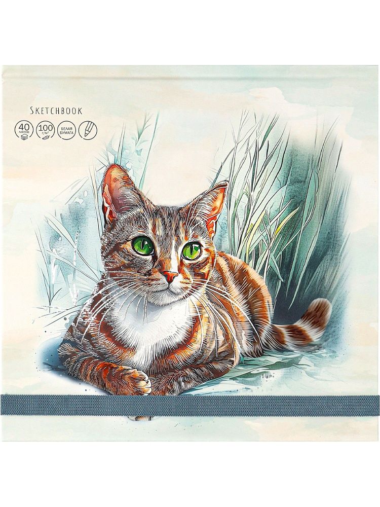 Скетчбук 200*200мм 40л., 7БЦ 100гр/м2 "Кошачий портрет" мат.лам., резинка