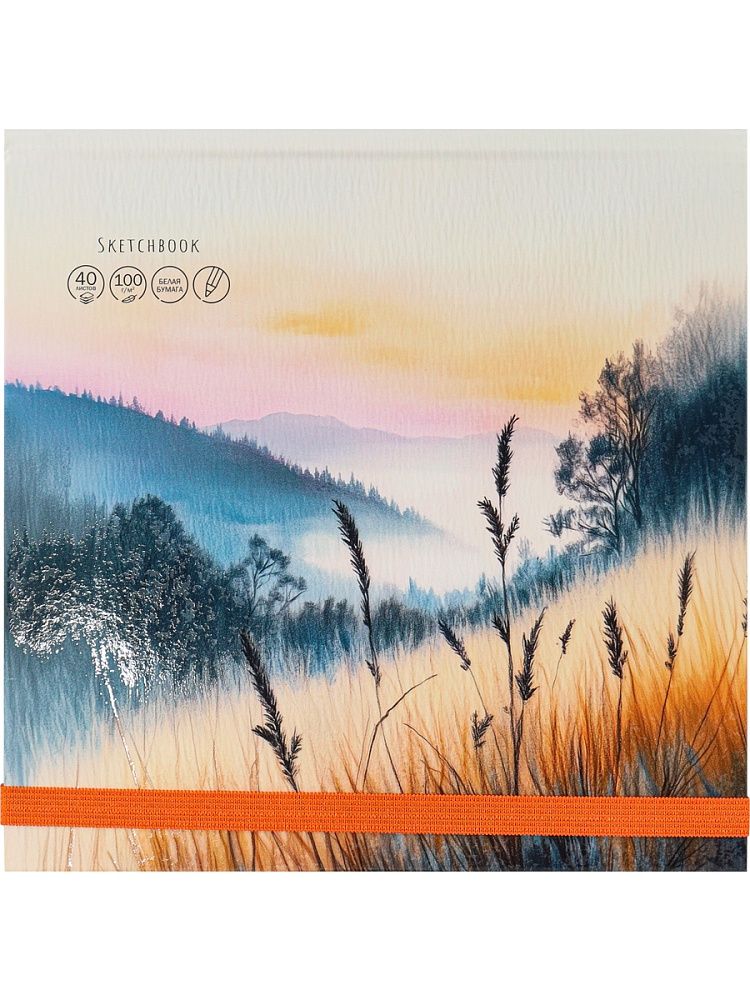 Скетчбук 200*200мм 40л., 7БЦ 100гр/м2 "Пейзажная живопись" мат.лам., резинка