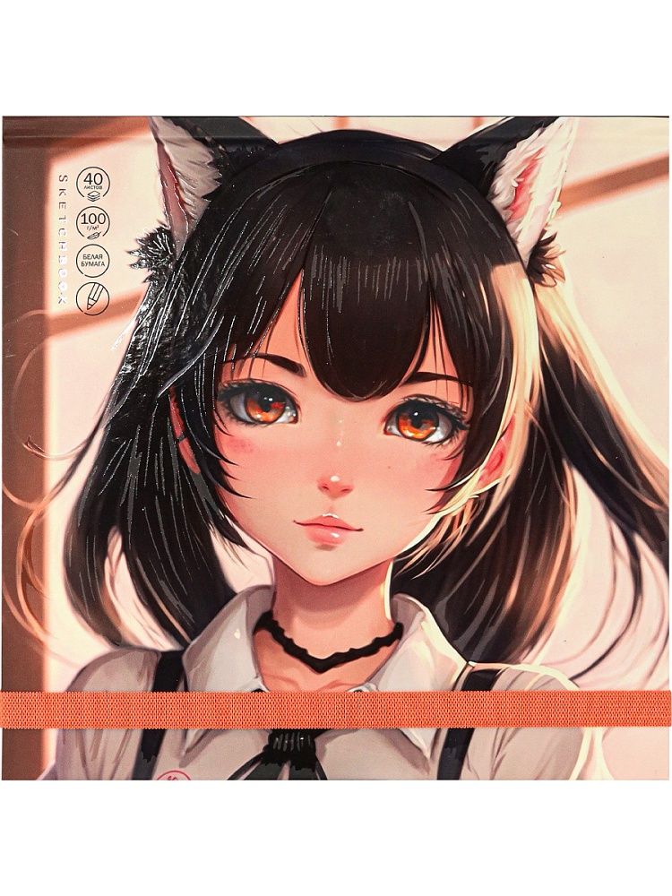 Скетчбук 200*200мм 40л., 7БЦ 100гр/м2 "Пронзительный взгляд" мат.лам., резинка