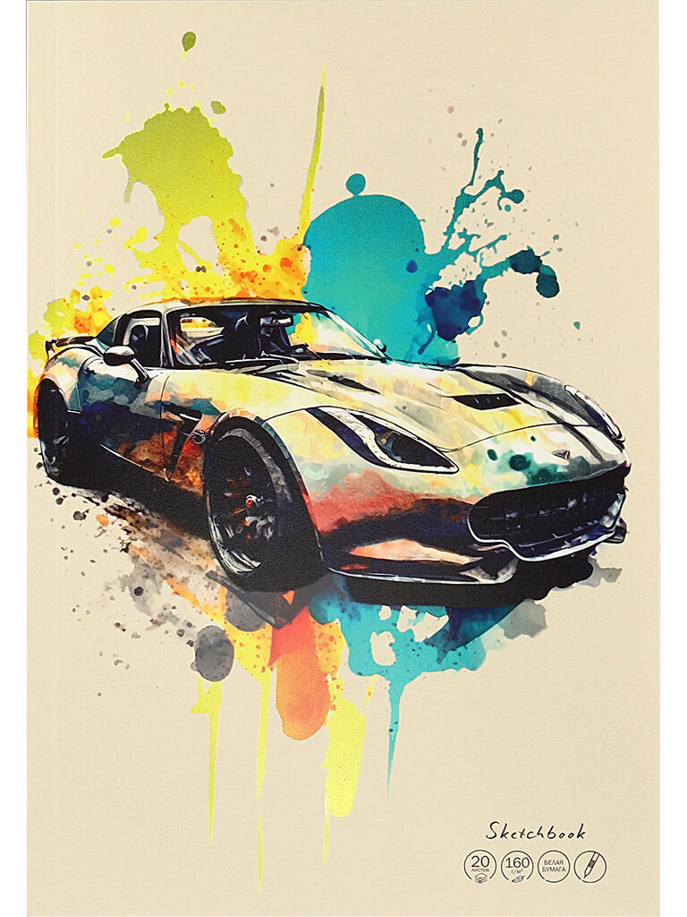 Скетчбук А4 20л., клеевой кор., 160гр/м2 "Авто в красках"
